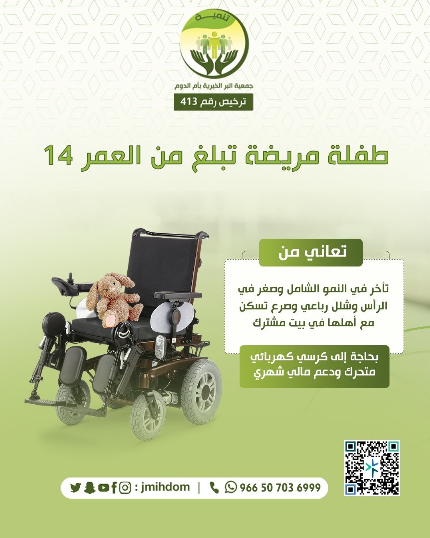 مستفيدة من ذوي الاحتياجات الخاصة تعاني من شلل اطفال